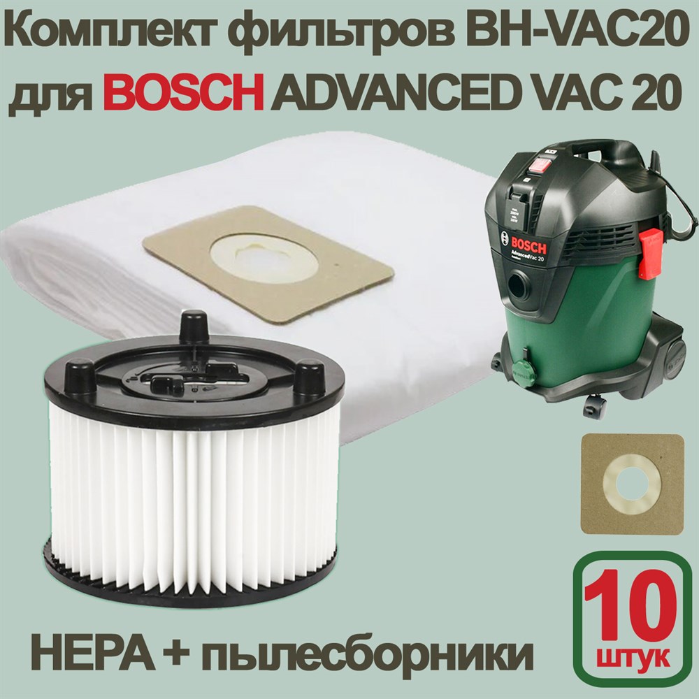 BH-VAC20/10 Комплект мешков-пылесборников (10 шт) и HEPA-фильтра для пылесоса BOSCH ADVANSED VAC 20, BOSCH UNIVERSAL VAC 15