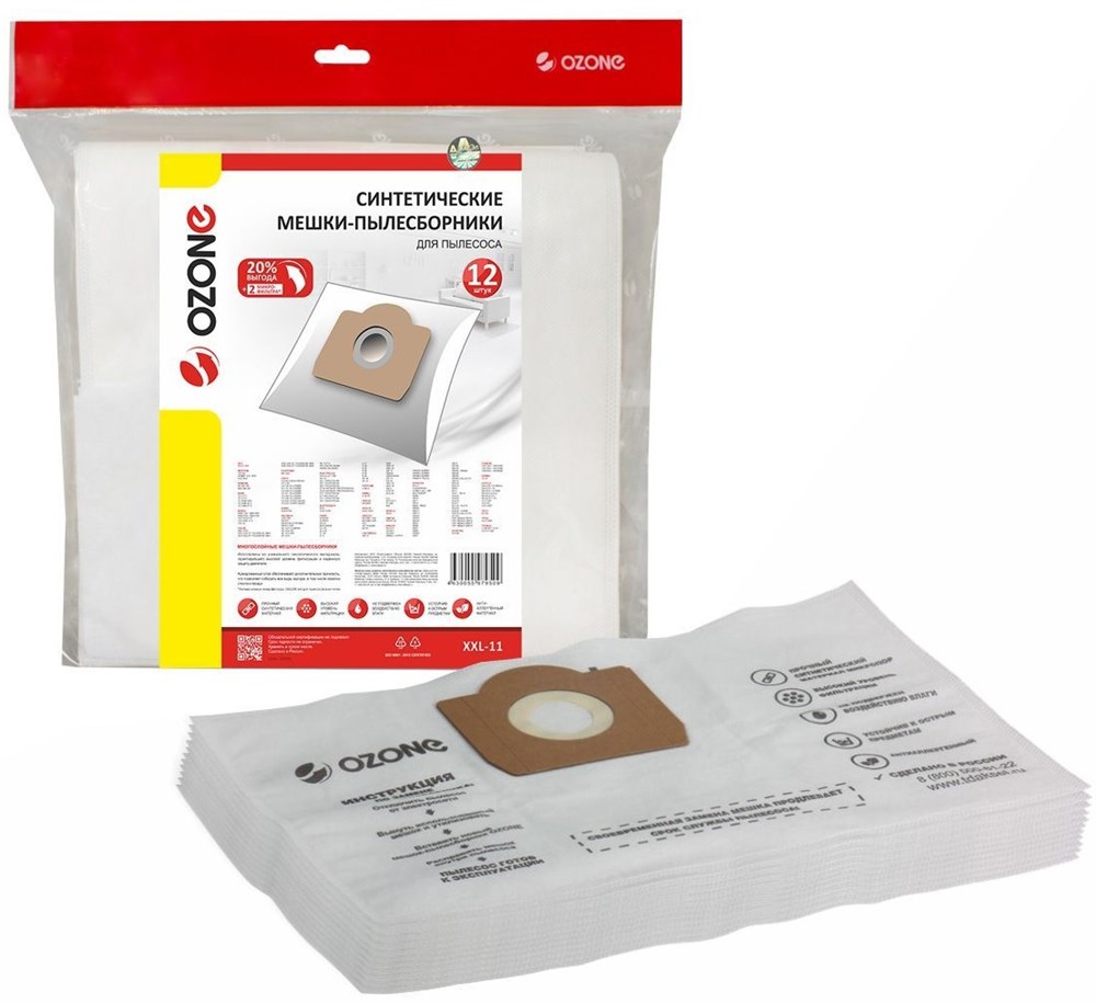 XXL-11 Мешки-пылесборники одноразовые синтетические, 12 шт + 2 микрофильтра, для пылесоса ROWENTA, AEG, BOSCH, ELECTROLUX, HITACHI, PHILIPS, SIEMENS, TEFAL, THOMAS